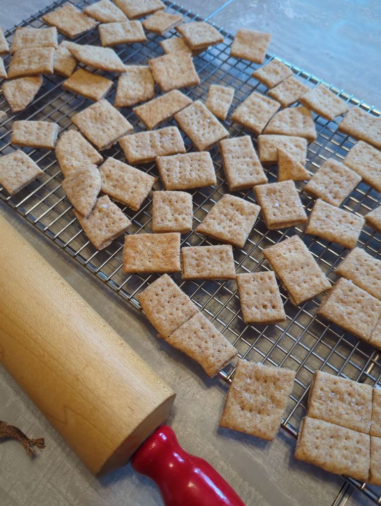 We mentioned this to Jake’s mom and she directed us to the King Arthur Baking sourdough crackers, so I gave those a try, too. Both turned out pretty well and I’ve made them each again with a few adjustments.